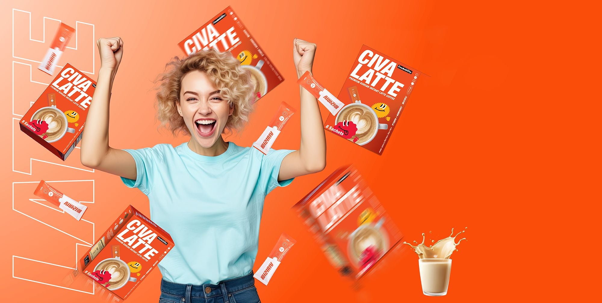 At CIVA LATTE, coffee is more than a drink - it's a fun, flavorful experience. Our cheerful mascots and vibrant design reflect the joy we want you to feel in every sip. Whether at home, at work, or with friends, CIVA LATTE makes life brighter, bolder, and a lot more fun.
